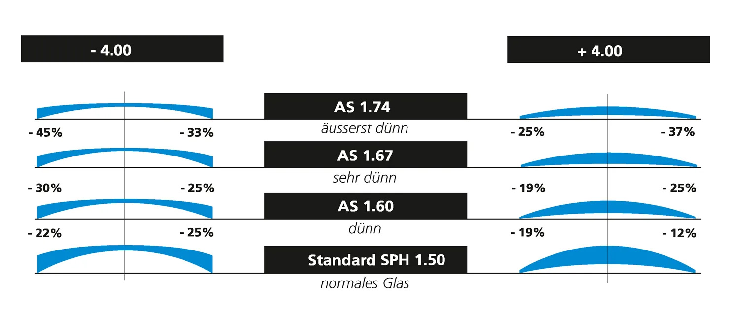 Kunststoffgläser sind Leichtgewichte und ermöglichen die Verwendung von äußerst filigranen Fassungen. Speziell veredelte Oberflächen verhindern Reflexionen und schützen die Gläser vor Kratzern. Kunststoffgläser erfordern jedoch nach wie vor etwas mehr Sorgfalt bei der Pflege als Mineralgläser.